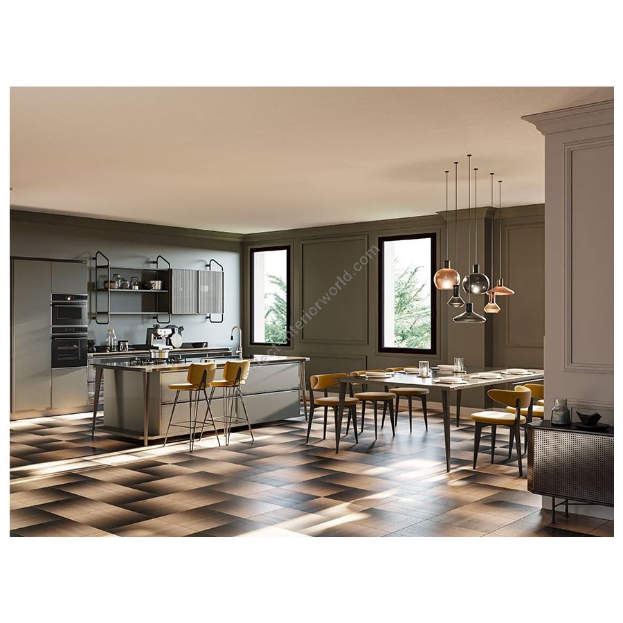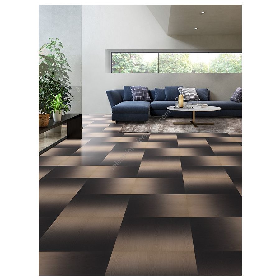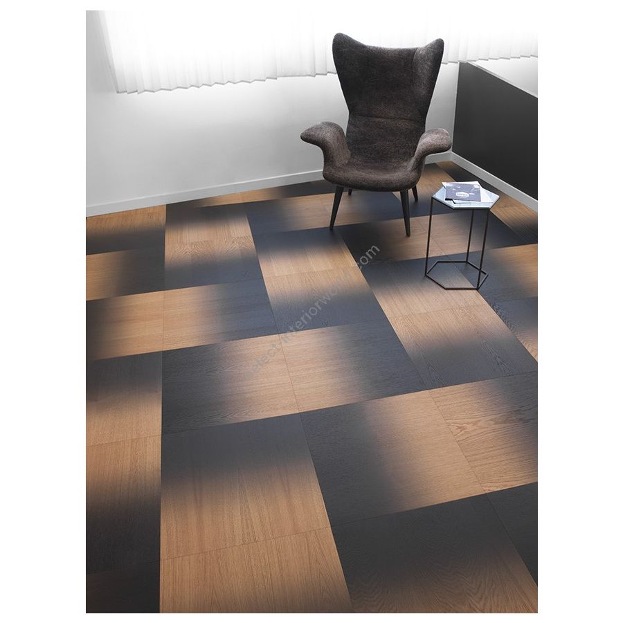 Innovative and fast 3-layer wall cladding and wooden floor, able to meet all the needs of transformation of environments and furnishings. A lively design, conceived together with the creative team of Diesel for the home collection. Made with the latest generation digital printing: a modern technology that uses non-toxic, non-flammable, odorless and water-based colors that do not cover the grain of wood. Dark Shade wood tiles are light and thin only 10.2mm. The Xstremestrong lacquering layers protect the oak wood on the surface and make this product resistant to high traffic.