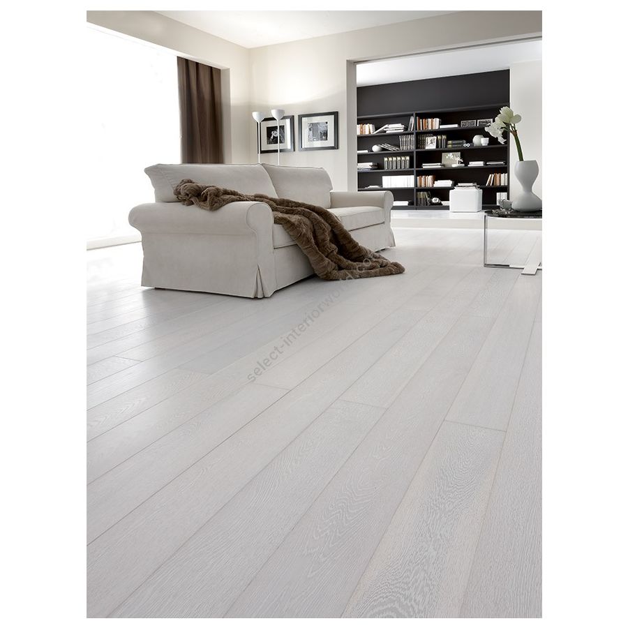 A pure white palette enraptures the eye with this bleached-oak parquet flooring called Blanchè from the Berti Studio collection. The solidity of oak takes on the appearance of a white wood , instantly brightening any setting and giving a sensation of order and cleanliness which will perfectly chime with geometric looks and modern minimalist environments. Indeed, with Blanchè you can put together a living room with contemporary-looking parquet floors that retain all the warmth and natural appeal of wood and still have its characteristic grain patterns.