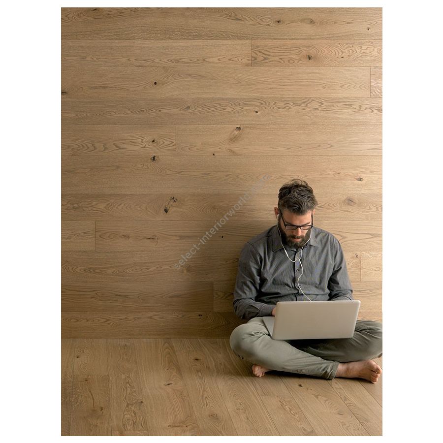 Moreover, with Declaration Oil, the laying geometries become an interesting aspect that dedicates different shades of style to the environment. In fact, it is possible to recreate a more vintage note by choosing a herringbone parquet installation, or a more dynamic one with the chevron pattern with 60 degree inclined cut, up to the further customization of the chevron valier with 45 degree inclined planks.