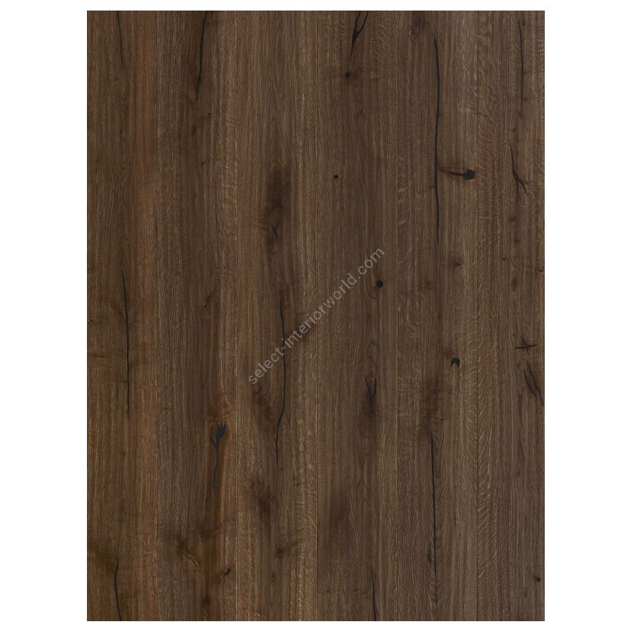 Canyon oak parquet feauturing by a deep brushing enriched by knots, cracks and splits and a finish with a reactive wood stain that highlight the grain of the wood adding to the floor a lived effect.