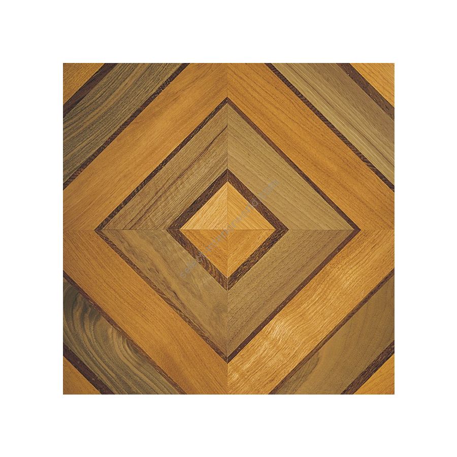 Morosini is a geometric marquetry pattern floor composed of doussie, wenge wood and European walnut. 2-layers parquet 600x600mm format.