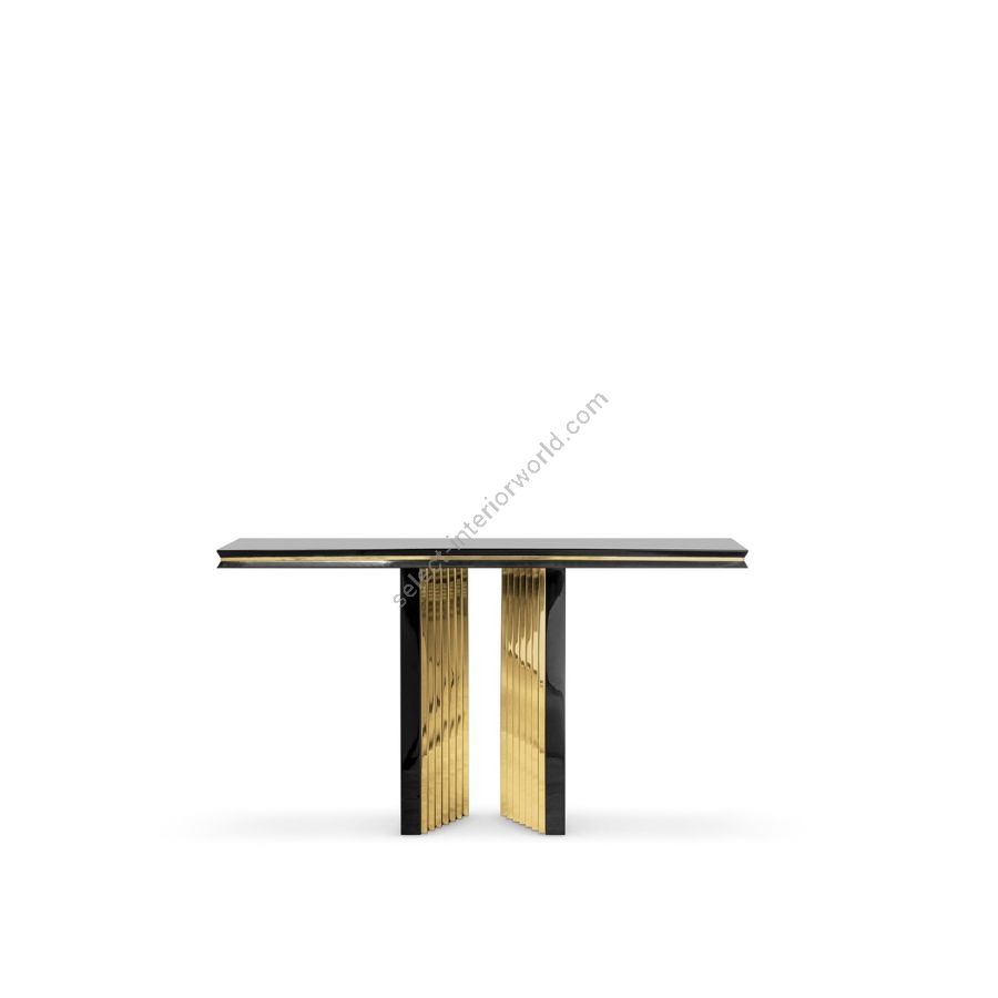 The best handmade techniques find balance in delicate woodwork softened with touches of brass, reflecting warm and golden tones on its polished surface. An impressive display of elegance, the Beyond console table, shows its exquisite capacity to fill a variety of ambiances thanks to its luxury presence.