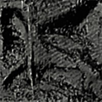 Glass mosaic composed of beveled, randomly arranged square tesserae.