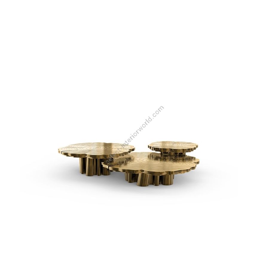 With one-of-a-kind design aesthetic and refined statement to the most influential minds, the Fortuna is a contemporary center table fit for any luxurious setting. Representing the essence of empowerment, sophistication, and mystics, the Fortuna features an exclusive gold brass surface for extravagant spaces. An elegant statement piece that incorporates the richest nature-inspired design, industrious welding techniques and a manually engraved top that emulates the outlines of log rings. This is a unique center table that embodies the fearless state mind of Boca do Lobo and the availability to customize the features to accommodate the most demanding client’s requirements.