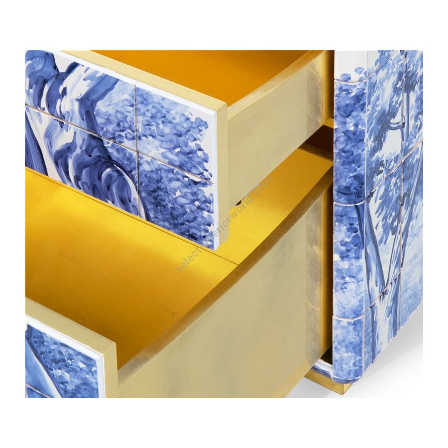 The Heritage Nightstand is influenced by the Azulejo, a landmark in Portuguese culture. Originating from the Arabic word zellige, this traditional hand painted tile that can be found all over the country, from churches, to houses and gardens and was often used to tell tales of Portuguese history. Superb for any graceful ambience, this unique nightstand references the importance of history, our ancestors and heritage, with a touch of blue or sepia glamour, for cold or warmer looks.