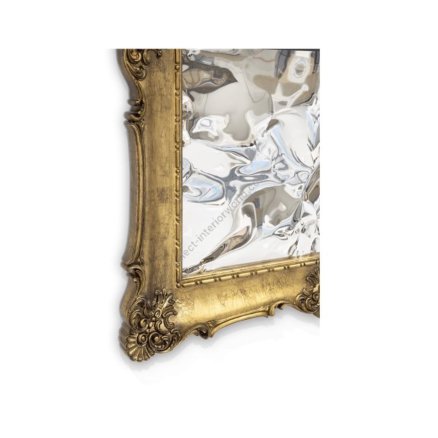 The D.Dinis luxury big mirror embodies the classic Parisian style in its golden detailed frame while capturing glimpses of irreverent and modern features on the surface. A distorting clear mirror bursts for unexpected juxtaposition.