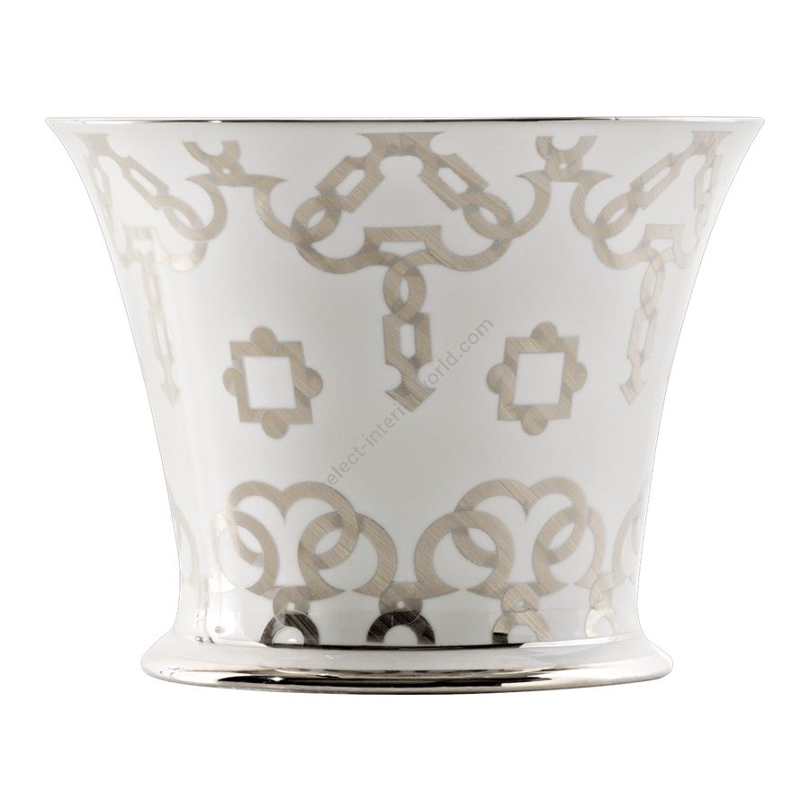 Handmade Porcelain Cachepot 5466 by Le Porcellane, made entirely of porcelain and hand painted. A piece of the elegant and refined "Tarsia" collection. 100% Made in Italy product.