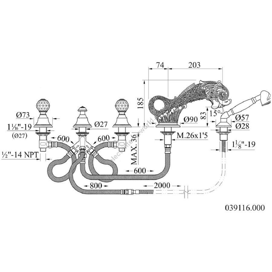 Bronces Mestre / Bath-Shower Fittings / Bath shower set for deck with porcelain 035011.M00.30