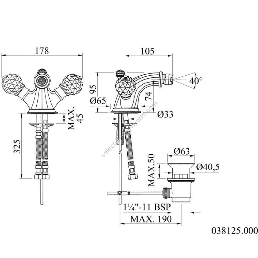 - Bronces Mestre / Bidet Fittings / One hole bidet mixer with Swarovski crystal 038125.000.50