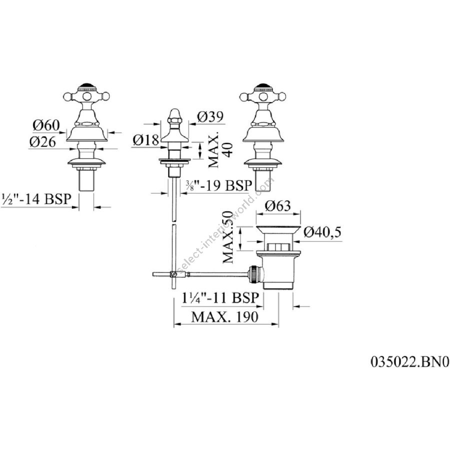 Bronces Mestre / Washbasin Fittings / Three holes basin set 035001.000.50