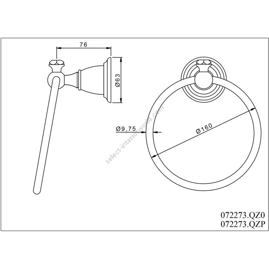 Bronces Mestre / Towel Holders / Towel ring 165mm with quartz stone 072273.QT0.50