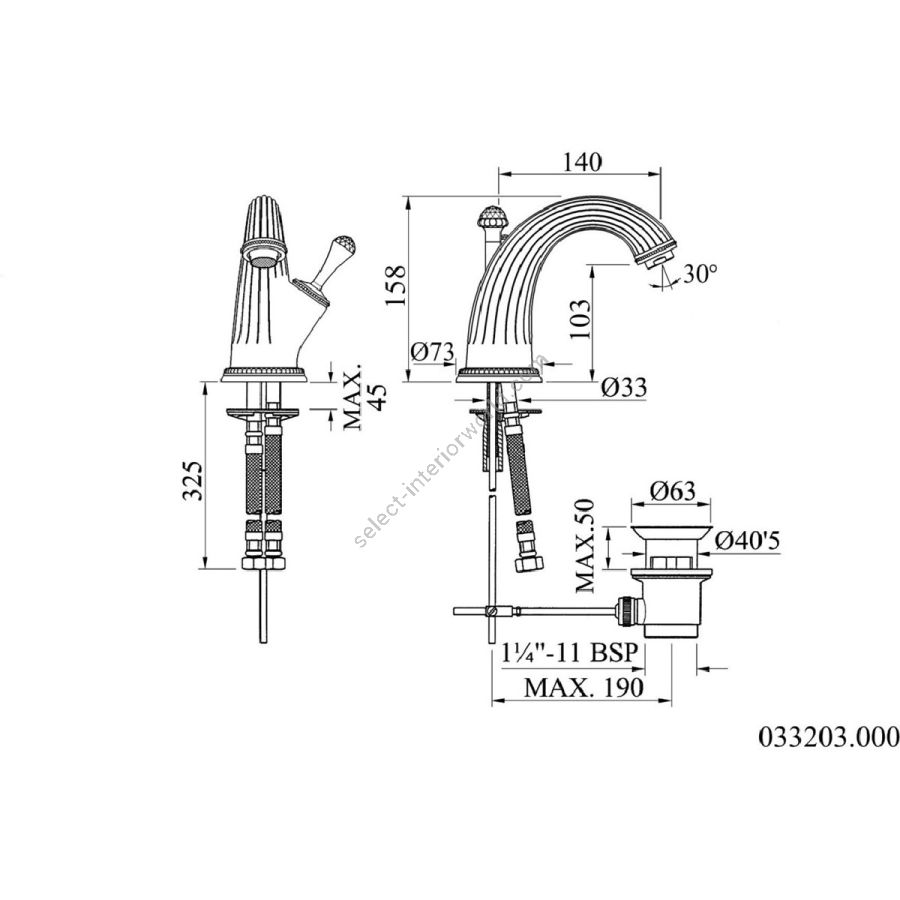 Bronces Mestre / Washbasin Fittings / Three holes basin set 033001.000.50