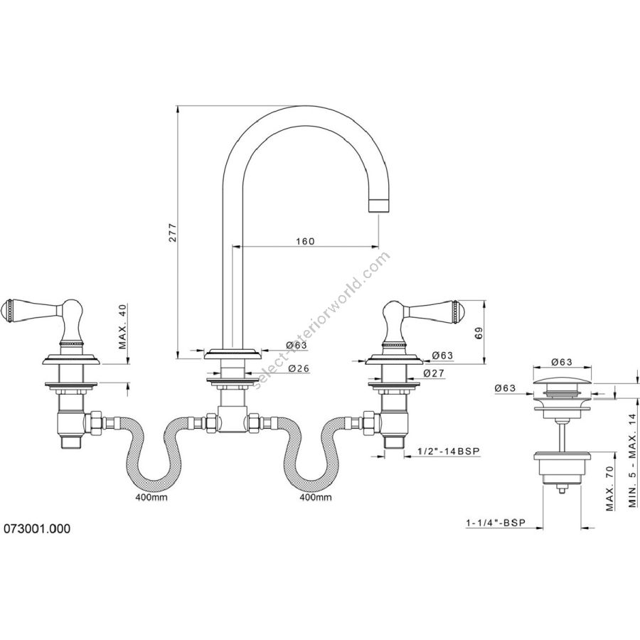 Bronces Mestre / Washbasin Fittings / Three holes basin set 073001.000.00