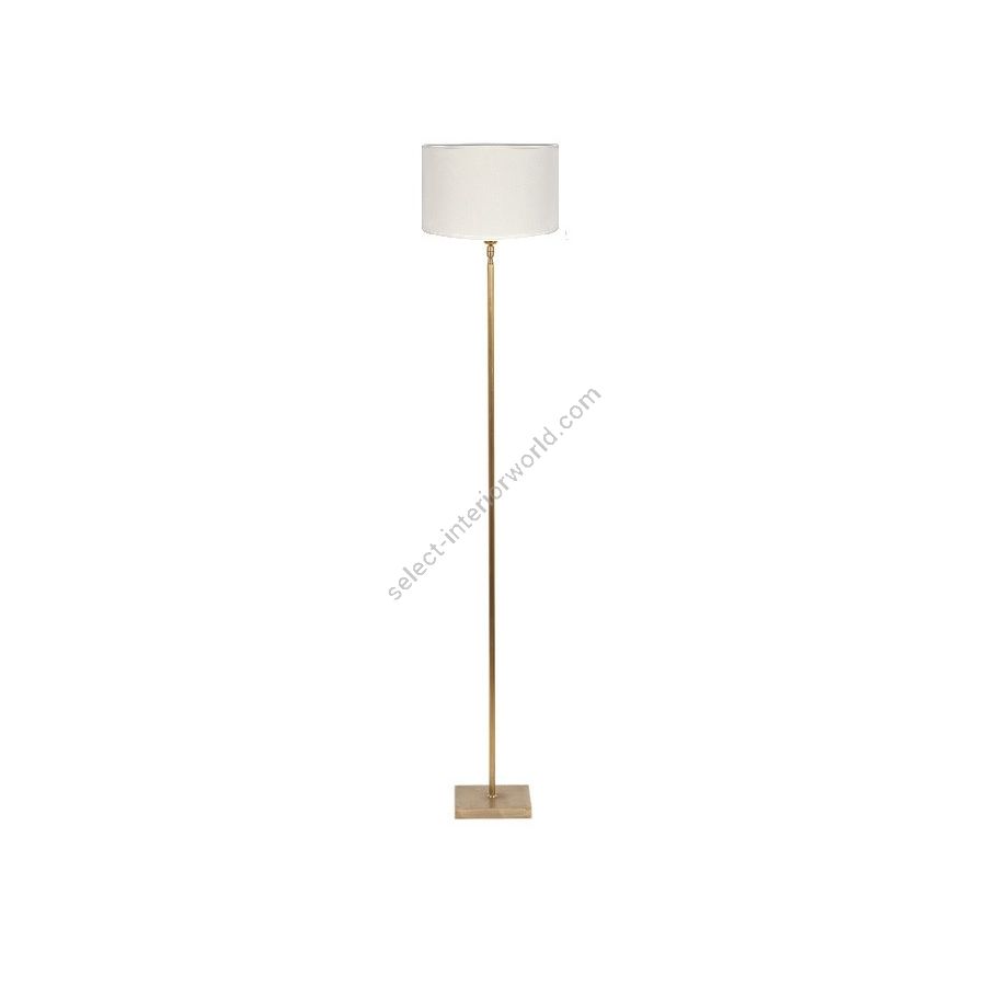 Floor lamp in brass. Made with a round tube on a square base. This sober and elegant floor lamp remains discrete in your interior. Available in black or matt gold patina, and in nickel or brushed nickel. Also exists in small size (LD12). Presented lamp shade in white cotton chintz in a conical shape (see other available shapes and colours).