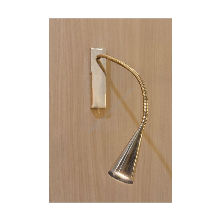Wall light with Led light made in brass. Made with a 30cm flex on an embedded rectangular base. This reading wall light gives a sober and elegant design, and an efficient direct light. Available in black or matt gold patina, and in nickel or brushed nickel.