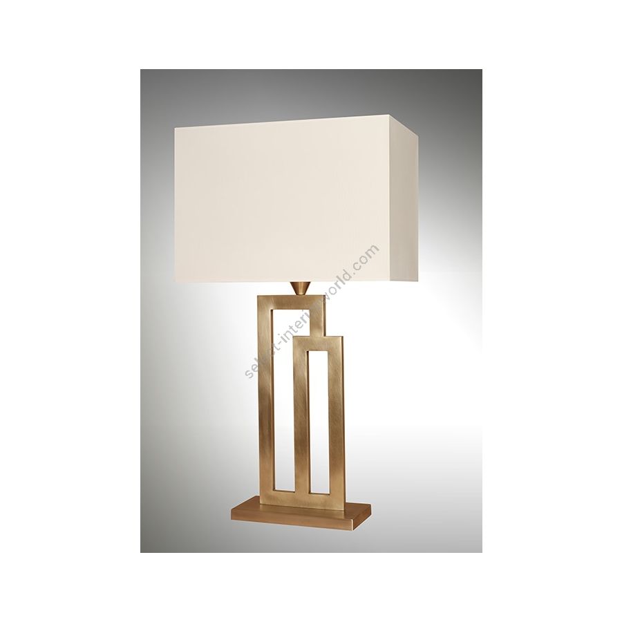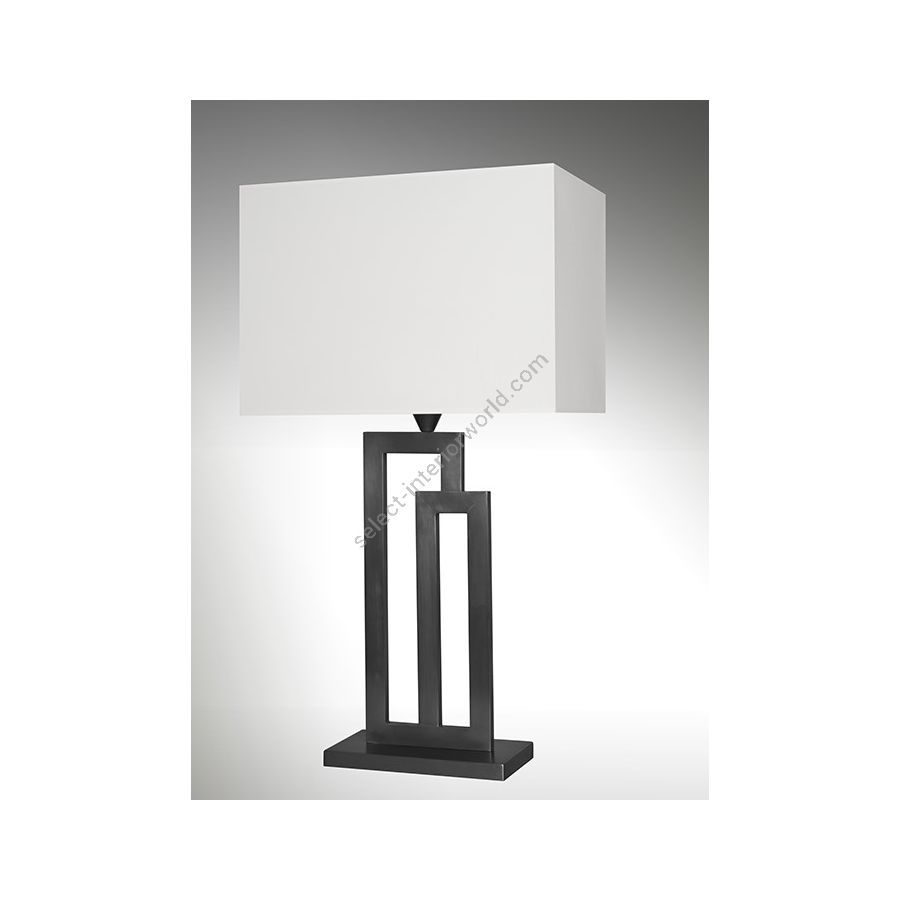 Lamp made in brass. Made with two large rectangular frames, on a square base. This contemporary art deco lamp gives a original design to your interior. Available in black and matt gold patina. Also exists in smaller size (L210A). Presented lamp shade in white cotton chintz in a rectangular shape (see other available colours)