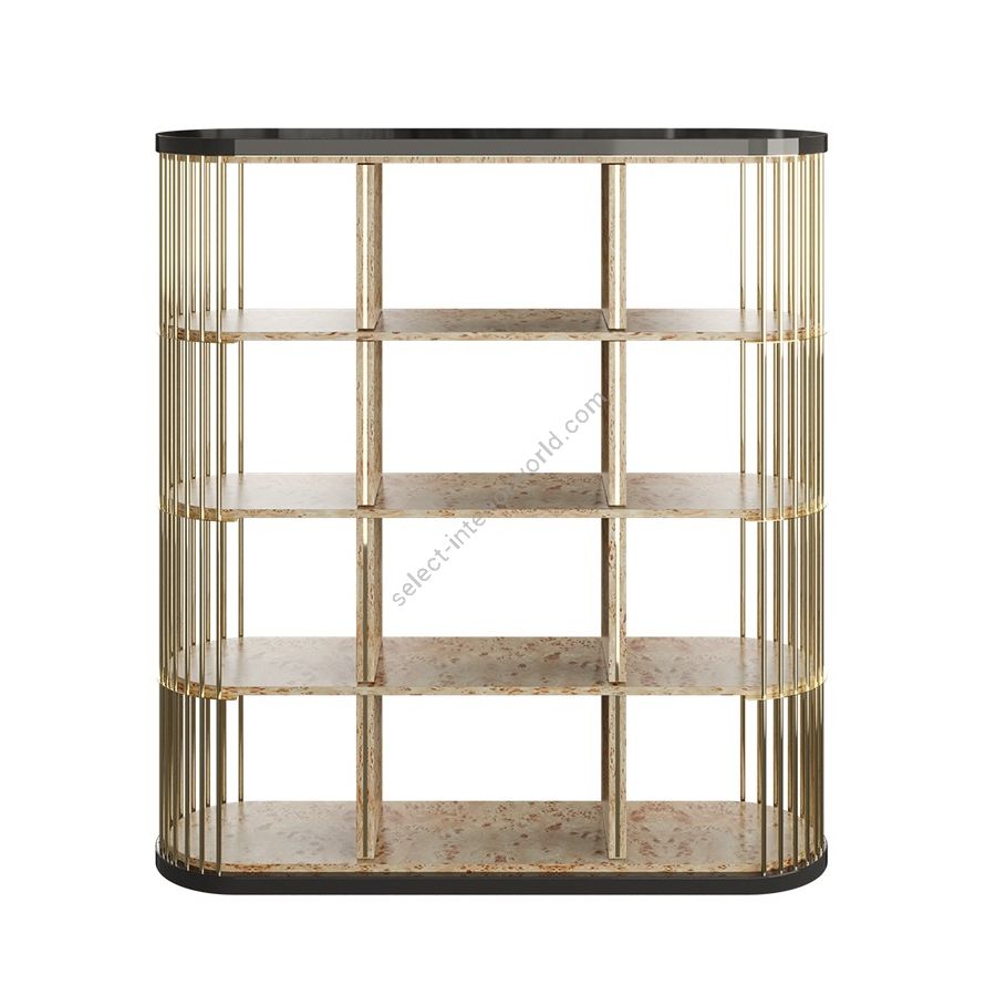 This bookcase carries the same beautiful name and charm that is capable to transform any living space into an outstanding one. The Grace bookshelf was designed to be an accent furniture décor to provide a luxurious statement to the interior. The classy decorative piece incorporates bespoke brass elements and a tailor-made poplar root veneer wood top. A sophisticated colour combination is smooth yet delicate – it manifests an effortless elegance that is alluring to decorate with and complete a total home look with balance and harmony. This modern design integrates sleek gold-plated brass lines that are intertwined and create a subtle frames for the several parts of the bookshelf.