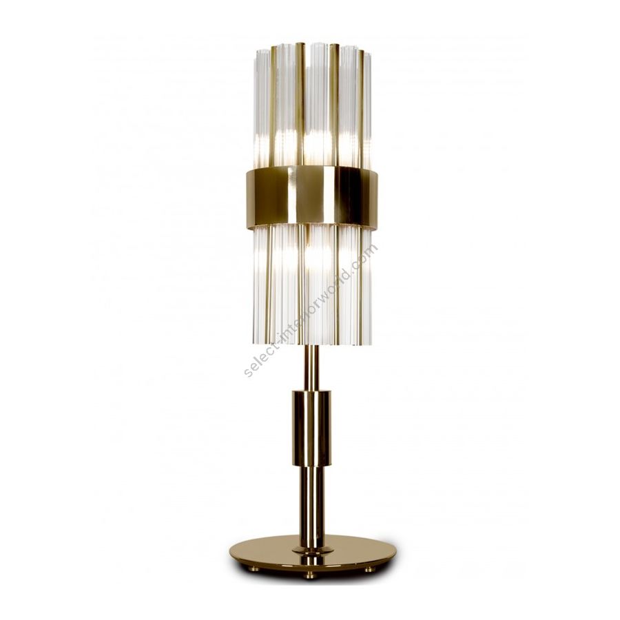Halma table lamp was designed to celebrate the fusion of noble materials as well as simple and delicate geometry. Made with a structure of brass involved by clear crystal glass, this design unpredictably fuses the two materials effortlessly and originally, granting it a cohesive and deluxe look. An extremely versatile lighting fixture with an exclusive beauty and elegance.