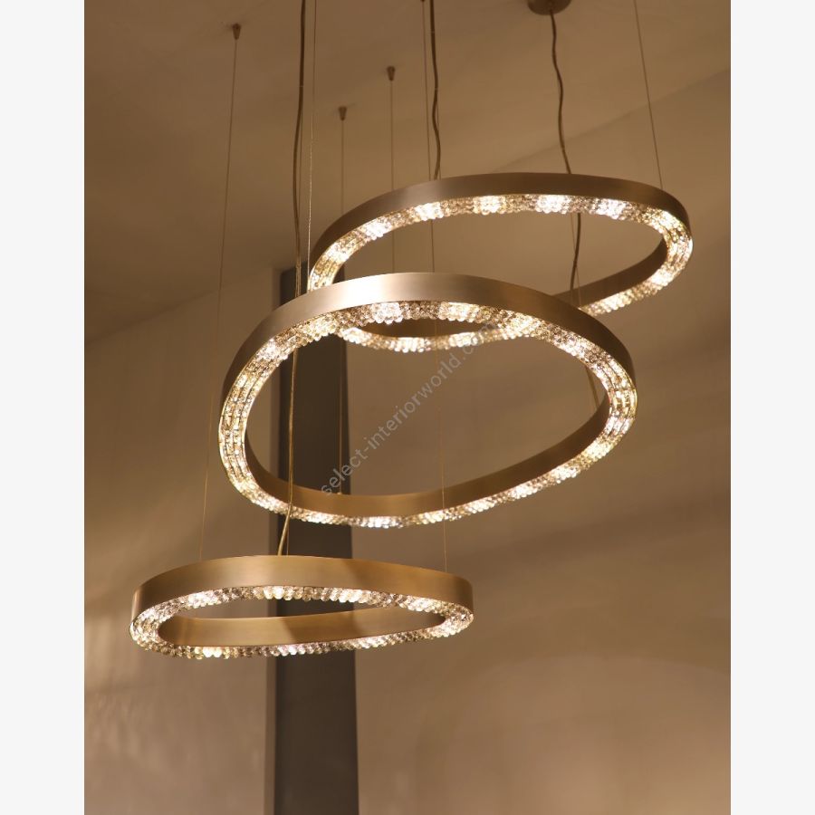 Minimalist by design, yet endlessly elegant—the Metis Suspension is a luminous celebration of refined simplicity. Thoughtfully handcrafted in brass and adorned with delicate crystals, this mesmerizing fixture brings a soft glow and a graceful presence to any interior space. What sets this piece apart is its customizable design: choose from one, two, or even multiple levels to perfectly suit your space and vision. Whether you're enhancing a cozy dining nook or making a bold statement in a grand foyer, the Metis Suspension adapts effortlessly to your needs. Its sleek oval form and floating crystal details strike a pure balance between delicacy and sophistication.