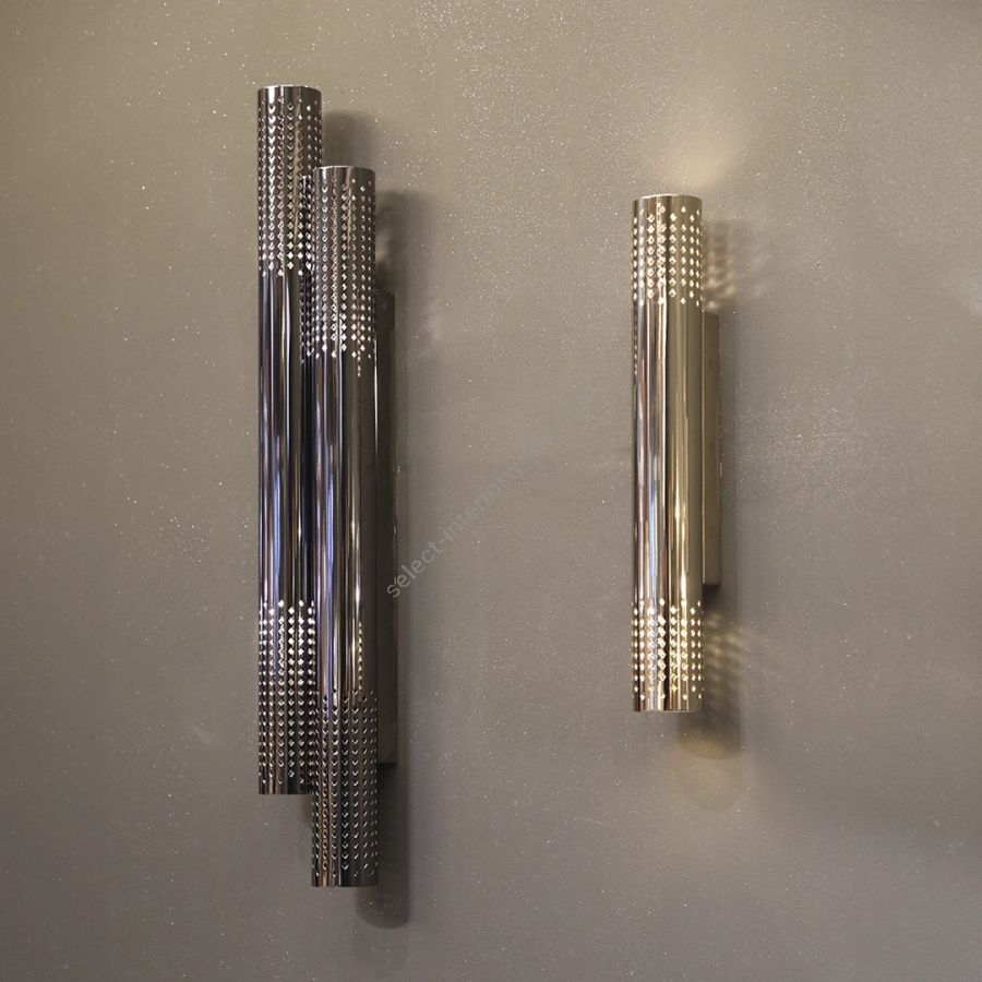 The simple shape of tubes with tiny rhomboid prints makes this wall sconce perfect for creating intimate spaces with delicate light. It can be customized by quantity and size to fit any interior and wall decor.