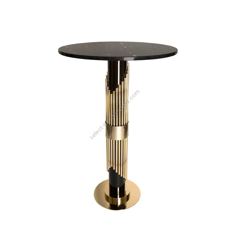 This elegant bar table features long gold plated brass tubes that give all the designs a whole exclusive and deluxe look, setting another level by their distinctive appearance. This recipe of rich materials, such as the brass and the Black Marquina marble, and sleek lines inspired by art-deco architecture make the Streamline table desirable.