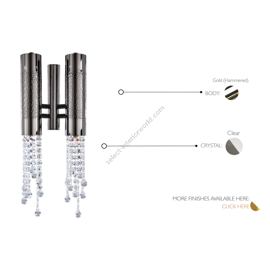 Thanks to the hammered gold plated brass tube and the crystal elements, this piece was clearly designed to perform in a way that pampers the eyes as the versatility of the Safi Collection is the key to make every project unique and personal.