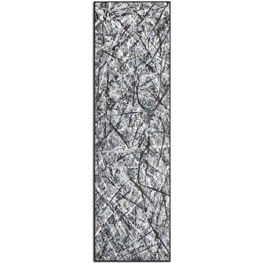 Hand-painted in the style of abstract expressionist Jackson Pollock, this dramatic artwork stands over 2 meters tall within a wooden frame and makes for a spectacular statement piece that will be the center of attention in any home.