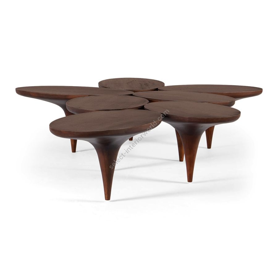 Hand carved joined ‘petals’ form the top of this charming coffee table, with tapering supports holding each petal. A delightful piece that will complement beautifully any style of interior.