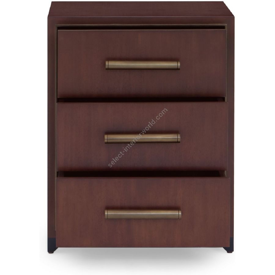 With an early 20th century Modernist influence, this understated side cabinet features 3 drawers with wooden handles in aged brass finishing. Also available as a larger chest 85-0045