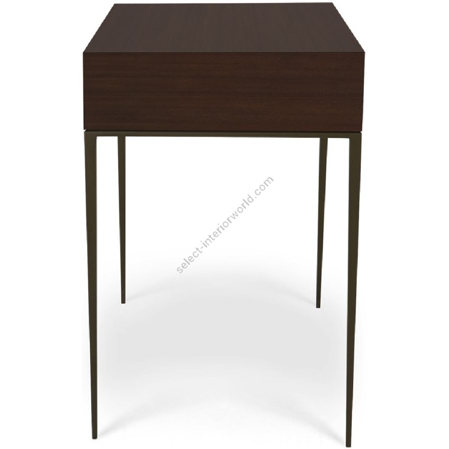 This exquisite forged metal side table features a single drawer with centered metal handle and fine slimline legs. Ideal as a nightstand.