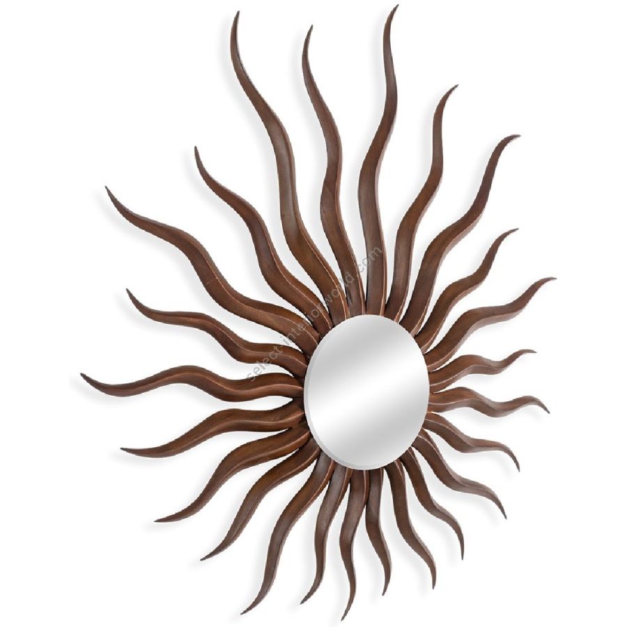 A stylized flaming sun, the expertly hand carved curling rays radiating from a circular pane, this spectacular mirror frame is a showstopping statement piece for any classic or contemporary setting.