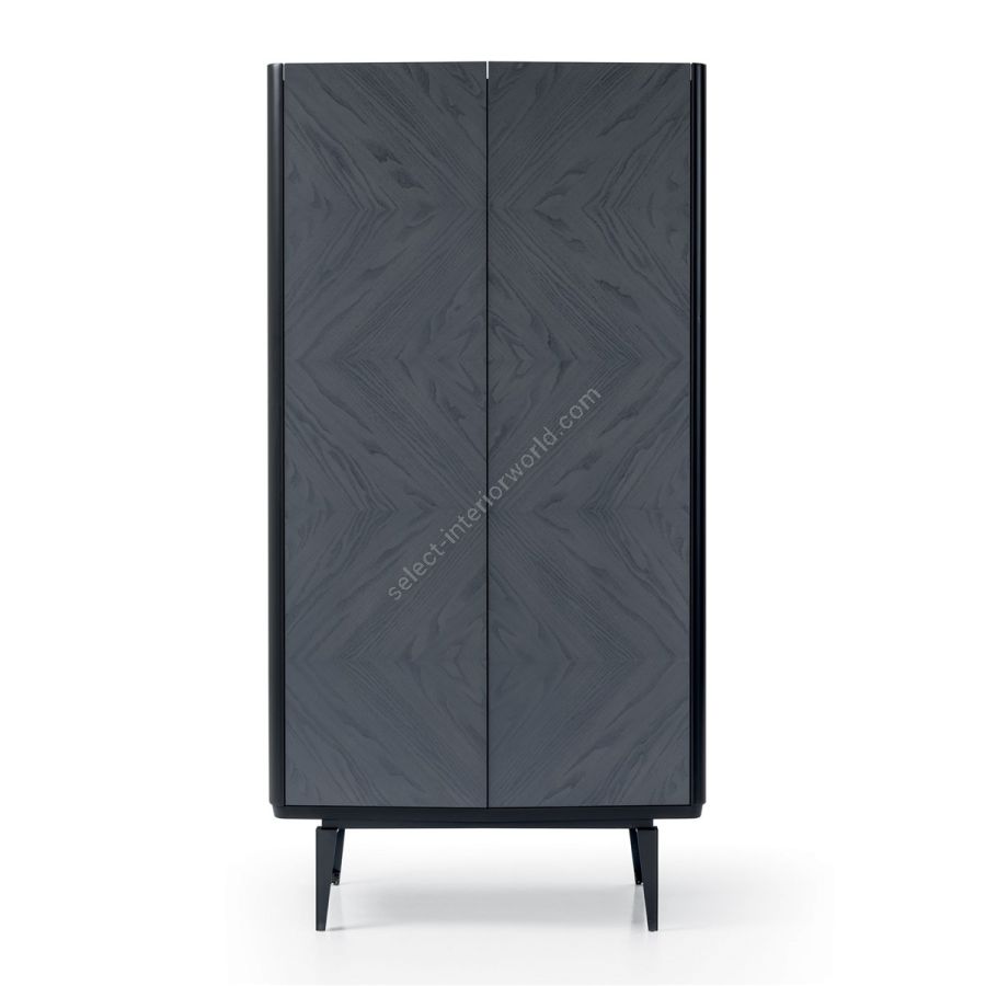 Pantographed and lacquered mdf structure. Doors in blockboard, lacquered, decorated or veneered in Caneletto Walnut or in inlaid ash “Shadow” plywood. Iron base and legs with adjustable feet.