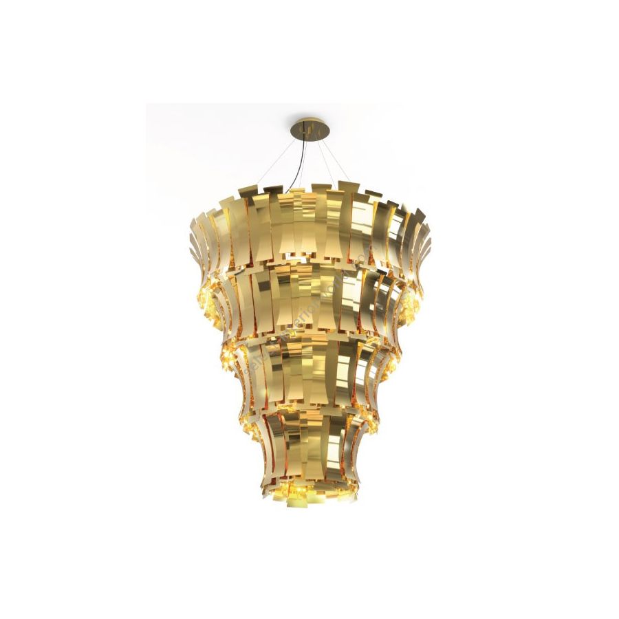 Etta is a large chandelier inspired by one of the best jazz singers of all times. Being the sophisticated lighting design it is, it boasts a nostalgic and feminine vibe, making it the right choice for every luxurious interior design. Each one of its brass leaves are shaped and assembled by hand by some of the most skilled artisans in Portugal. With a brushed gold standard finish, this bespoke round chandelier can be customized to fit your interior design project. A true example of high-quality craftsmanship, this modern chandelier features four suspended arcs, that together produce a feeling of bliss in every refined living room or grand hall.