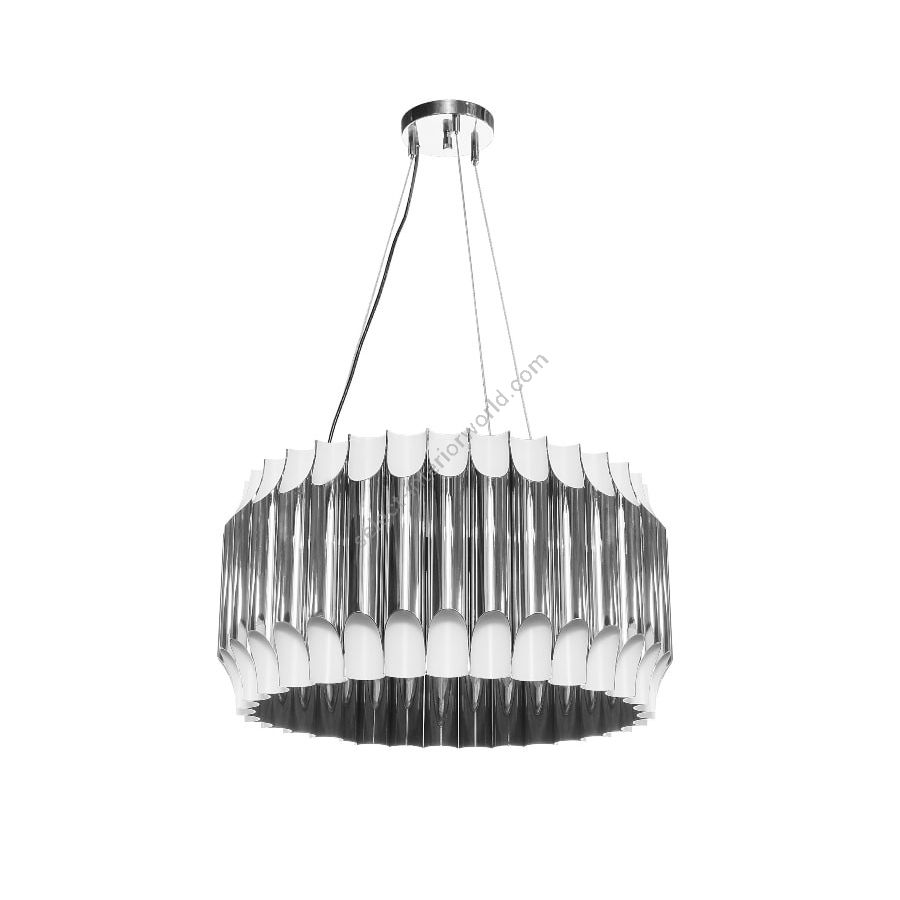 Galliano round chandelier is a mid-century modern light with a shape that was inspired by a pipe organ. With sculptural shapes and an extremely balanced design, this modern lighting design gets even more beautiful when you see the light being casted thought its pipes. It’s possible to customize this suspension lighting in any shape or dimension: round, oval, square or rectangular. Handmade in steel, the features include a nickel plated finish applied by some of the finest artisans in Portugal. The interior of the lamp shades are in white matte, enhancing the lighting design with a perfect mix of form and function. Ideal to use as a modern dining room lighting fixture or as an entrance lighting, Galliano has a mid-century modern appeal that won’t go unnoticed.