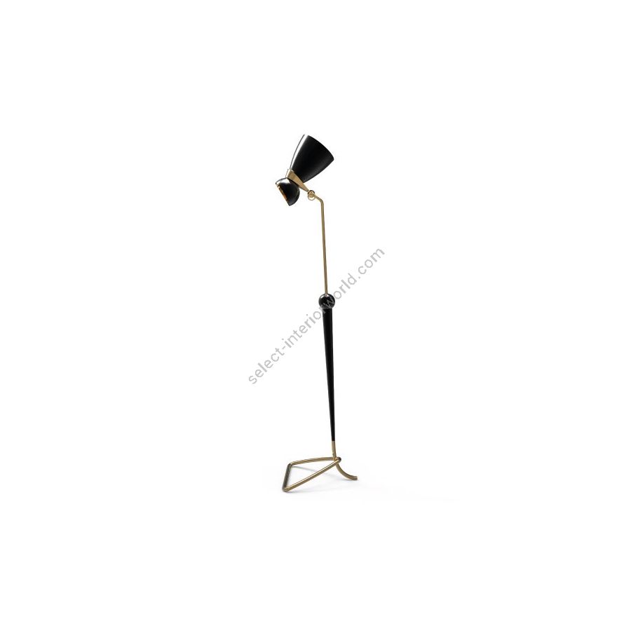 Amy vintage floor lamp was inspired by the great jazz singer and songwriter: Amy Winehouse. Amy has a vintage retro style that embodies the soul of the British artist and the 50’s interior design style. With a glossy black lamp shade that bear a resemblance to Amy’s legendary hair and a small gold powder paint detail that recall us of her golden earring, the brass floor light suits the most demanding mid-century modern setting. The flexible lamp shade is what makes this modern lamp, the perfect reading light for your vintage bedroom or retro home office, since it will point in any direction you need. Note that Amy floor lamp features a footswitch that is on the cord, and the brass detail on the lamp shade has the sole purpose of adding a more modern aesthetics feeling.