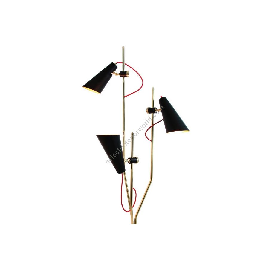 With a mid-century modern vibe, this Evans floor lamp has three diffusers. Each shade is moveable and adjusts making this a very functional light source that can be changed depending on where it is placed. This tripod floor lamp features an avant-garde design that will provide a light-filled optimism to your mid-century modern interior design. The matte black & gold powder paint finishes are a great accent for any space. With a height of 74 inches, the on/off switch is conveniently located for a quick and easy use.