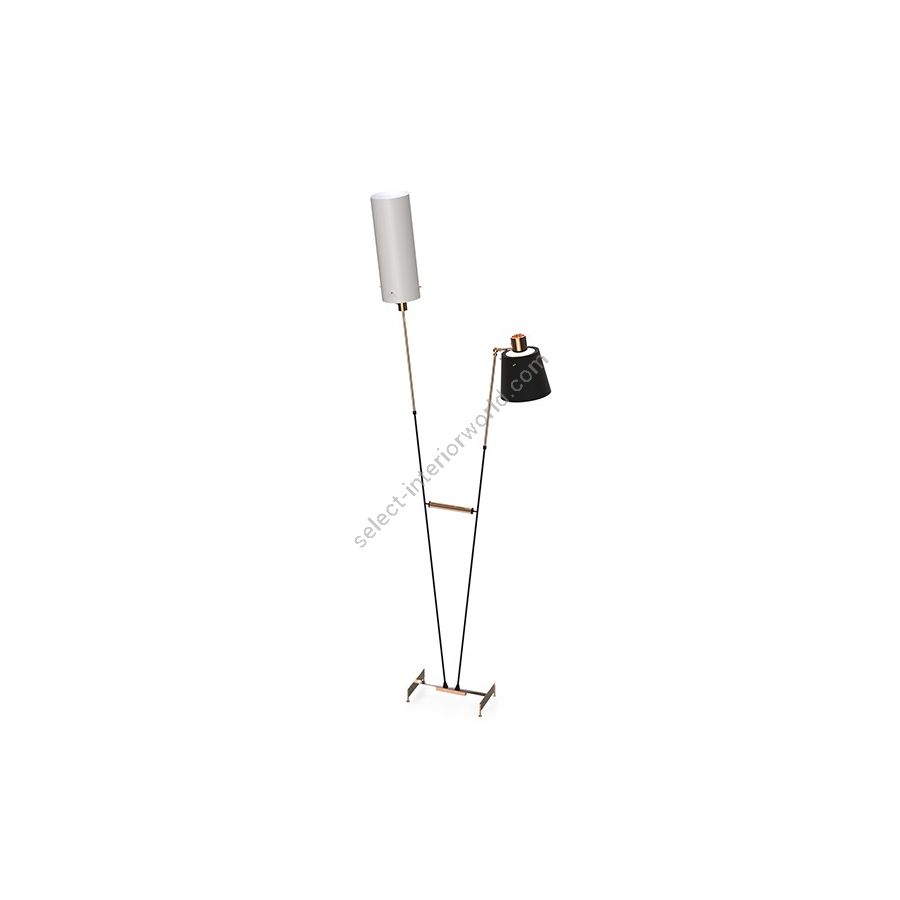 Just as the influential Jaco Pastorius jazz composer but also as gifted electric guitar player, Pastorius standing lamp revives the 70’s design aesthetics with a dual character. The result is a sophisticated and highly functional brass floor lamp with two distinct diffusers that can be lit alternatively. Therefore, the vintage floor lamp allows you to point the light where you need it the most. Pastorius is the ideal corner light for your mid-century living room and reading corner since this versatile floor lamp can provide any space the perfect reading lighting. The black and white floor lamp has a structure made of brass and lamp shades in acrylic and aluminum with a matte black and glossy white exterior.