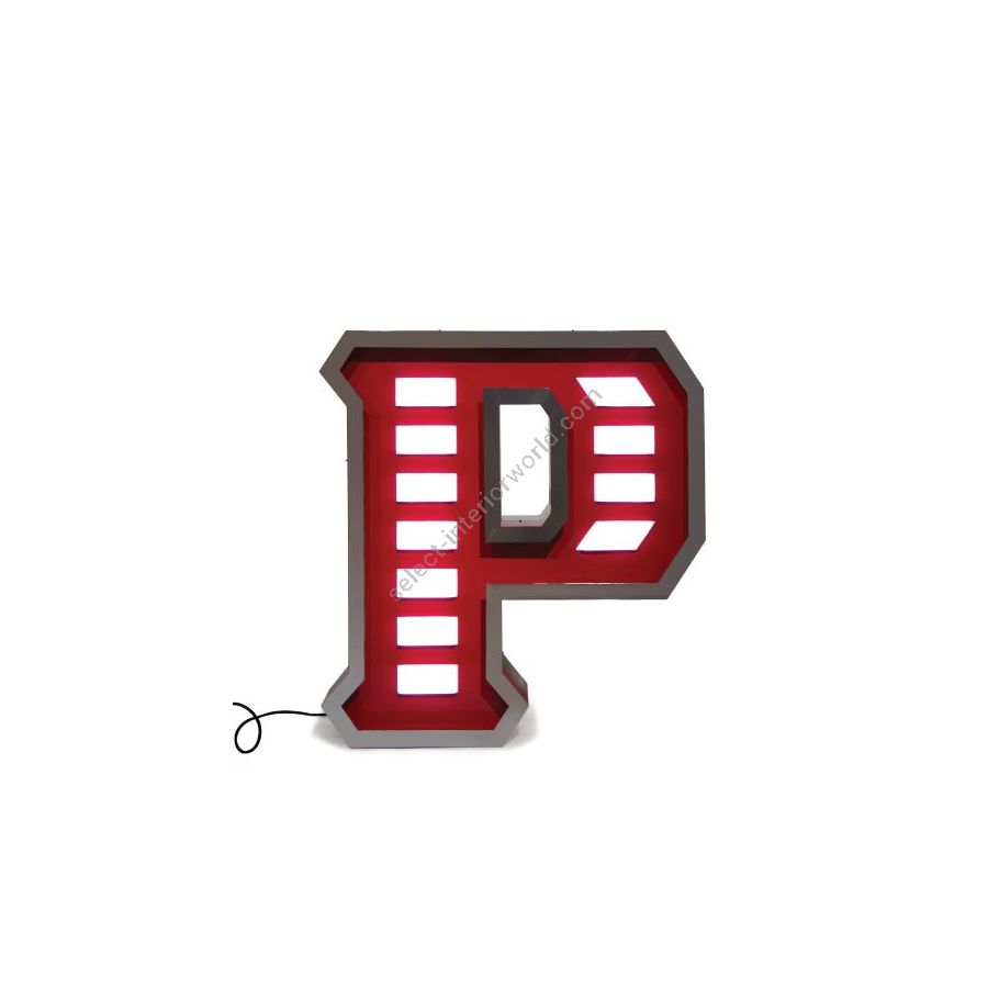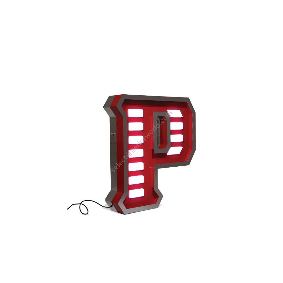 Handmade in aluminum, stainless steel and acrylic, the letter P stands for priceless. By adding the white LED lights with the red colours in the body of the marquee letter design will make your interior or exterior design project a one of a kind, either if you place it on a wall or on the floor. With a height of 1 meter, this lamp can be customizable on demand and its available on a mini version. The perfect way of getting originality, glamour, and softness in your space, whether it’s inside or outside.