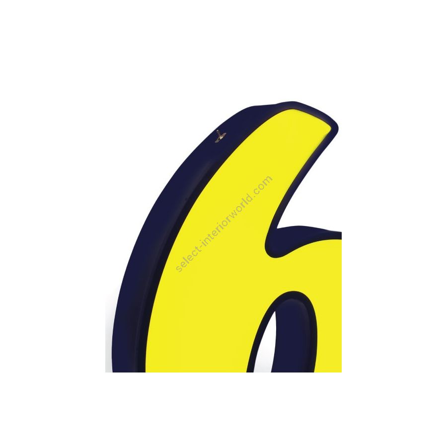 With its round shape, the number 6 has the perfect harmony between the colour and symmetry. The vintage retro style is clearly the one to make an outstading appearance in the stunning bright yellow colour. Inspired by the splashes of colour of the items of the vintage style, this handmade lighting design has an acrylic coating coveting that gives a soft and subdued aura. With a height of 1 meter, this marquee lighting design can be floor lamp or a wall mounted. The marquee lamp that can customizable on demand, is available on a mini version and fits perfeclty into an interior or exterior design project.