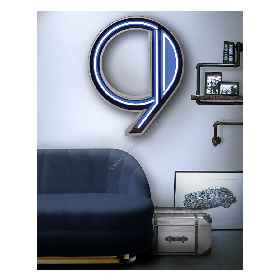 Art deco just landed and landed perfeclty into this number 9. Calling for all the lovers of The Great Gatsby and the aura of the American bars in the 50's, the round shape of this marquee letter shines bright like no other. With cyan neon carrying the aura of an era, you can bet you're going to get the best modern era design possible with this lighting design. With a height of 1 meter, this marquee lighting design can be floor lamp or a wall mounted. The marquee lamp that can customizable on demand, is available on a mini version and fits perfeclty into an interior or exterior design project.