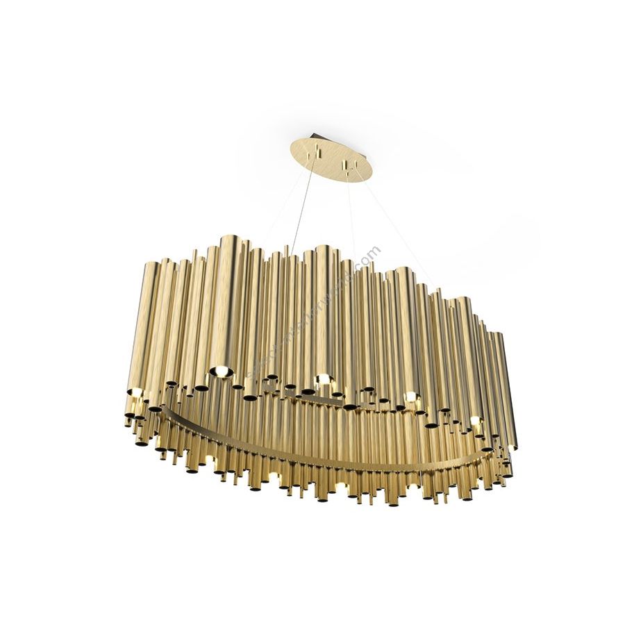 Brubeck mid-century modern chandelier is inspired by one of the foremost exponents of cool jazz: Dave Brubeck. This unique oval chandelier represents the sophistication and finesse of the American jazz pianist, displaying a very luxurious feeling. DelightFULL’s skilled artisans handmade this oval chandelier in brass, covering it with a gold-plated finish, which can be customized in multiple other finishes. The result of this outstanding creation is a functional dining room chandelier with sculptural shapes.