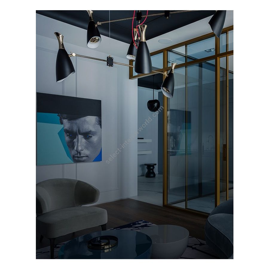 Duke Pendant is a modern pendant lighting design that boasts a heavy nostalgic 70s groove vibe. Inspired by the simplicity of the 1970s, DelightFULL’s designers were able to create an iconic modern ceiling light that suits the most demanding setting. Produced in Portugal, it is handmade in brass and aluminum. The body, made of brass, has both a matte black and a gold-plated finish, while the shades are lacquered a glossy black on the outside. The inside is matte white, but it can also have a gold powder paint finish. It is a stunning bedroom ceiling light, but this large ceiling light can also be considered for other settings, such as a mid-century modern living room.
