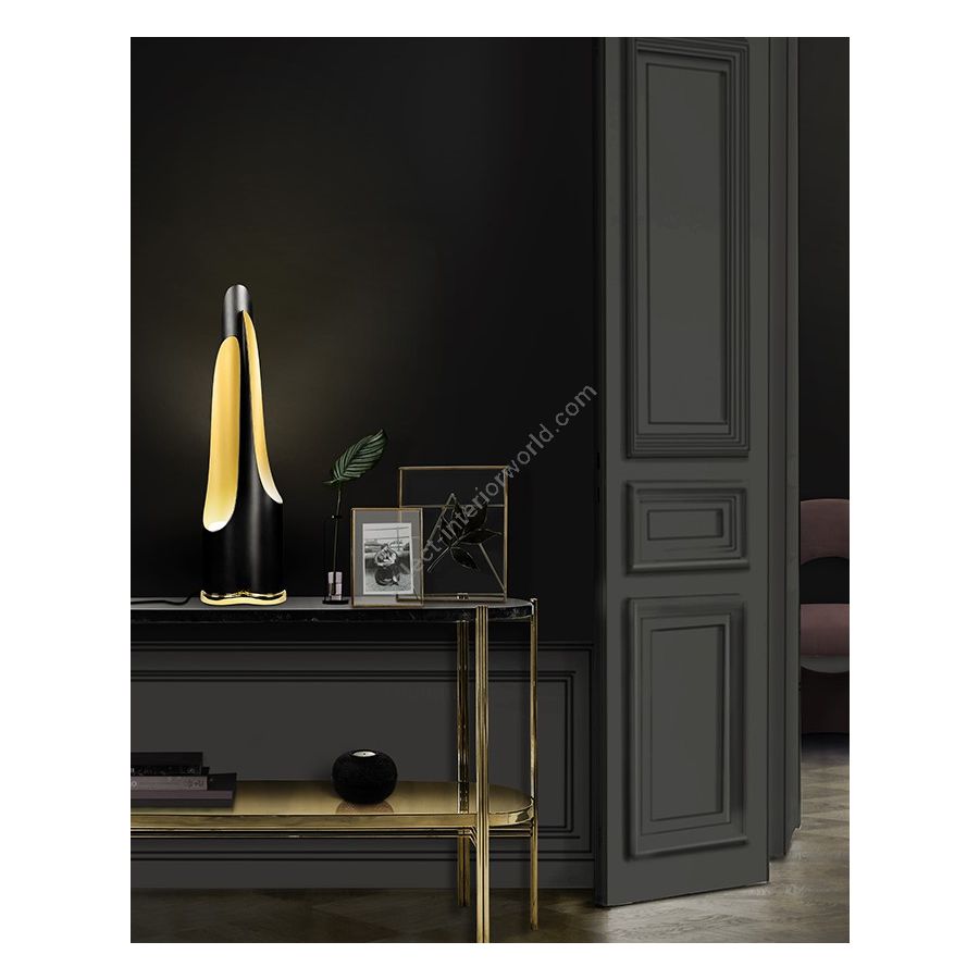 The mid-century Coltrane table light is a modern lighting fixture, which embodies the contemporary principles of minimalism. With this in mind, DelightFULL’s designers came up with a minimal black table lamp with three tubes that cast the most soothing glaze. This modern desk lamp is handmade in brass and steel, with a gold-plated base that is topped up with a matte black finish on the three shades. It serves as a great bedside table lamp, as well as a unique entryway table light.