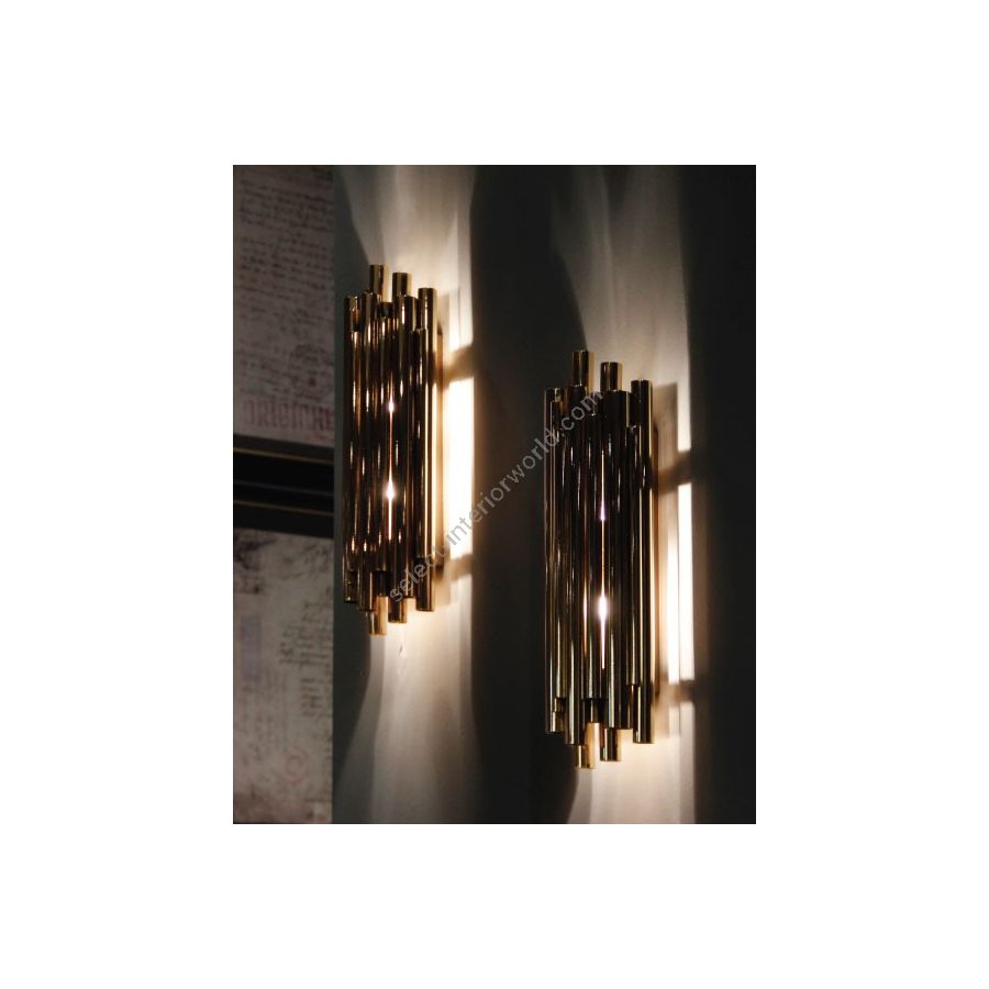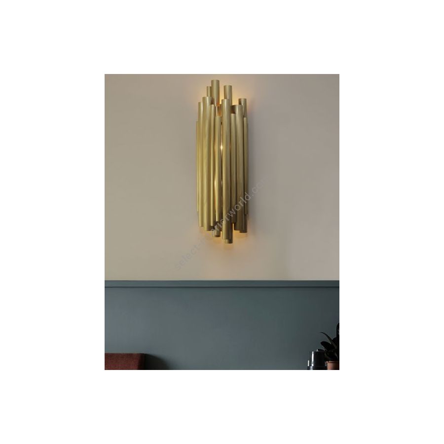 Luxury and art deco are synonym with this Brubeck wall sconce lighting design. Inspired by the timeless musical instrument that is the pipe organ and one of the foremost exponents of jazz, Dave Brubeck, this luxurious wall sconce is a statement piece on its own. For a finishing touch, it boasts a very art deco gold-plated finish. This modern wall sconce to light up your home, making it the perfect candidate for a maximalist dining room, or even an entryway decor project.