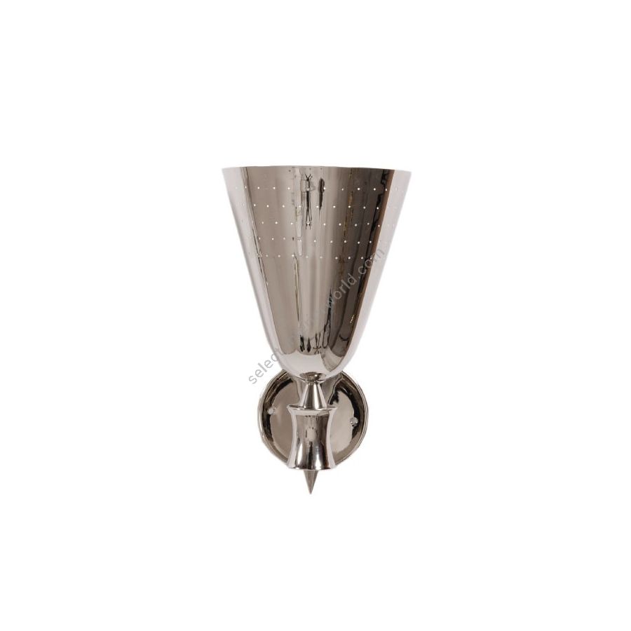 Charles is a modern vanity light designed by DelightFULL and inspired by the mid-century lighting classics. A simple lighting design, Charles is handmade in brass and aluminum by some of the finest artisans in Portugal. The mount is made of brass, with a nickel plated finish, while the shades have minimalist perforation details and also feature a nickel plated and a matte white finish. It is a mid-century wall sconce that creates a stunning visual effect, having the possibility of being used with one or two diffusers. The perfect wall lamp shade for a Scandinavian style bedroom, or a contemporary bathroom.