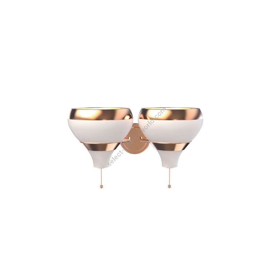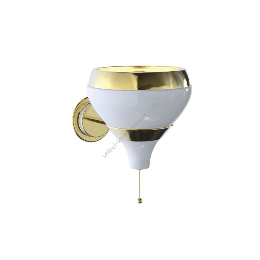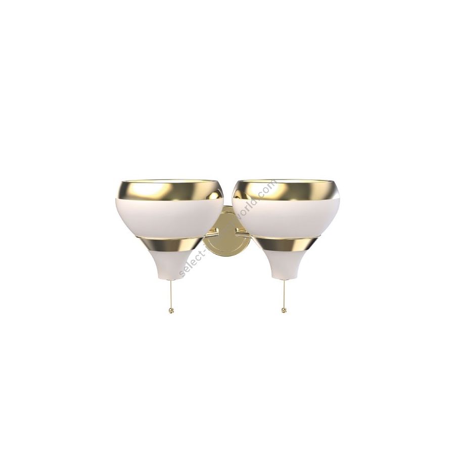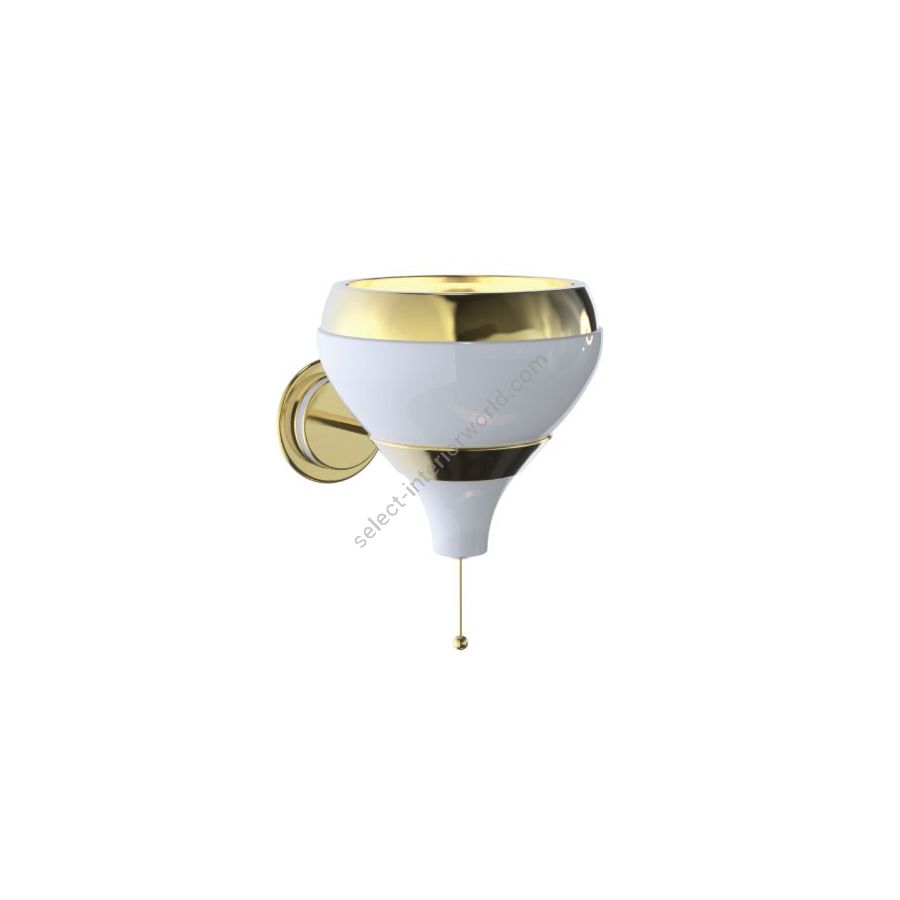 Hanna is a contemporary wall lamp that will bring a smooth ambiance your mid-century modern interior. With a structure made in brass, this wall sconce is gently covered by a gold plated bath, while its aluminum lamp shade is outlined by a gold plated and matte white finish. The on/off switch is located below the lamp shade with a stylish design for a quick and easy use. This white wall lamp can be customized and instead of having one lamp shade, you can choose to have two, in order to provide a more balanced look. With a minimalist style, Hanna wall light fixture is a luxurious addition to any space. Ideal as a bathroom mirror light or as an entrance wall lighting, Hanna is a stylish lighting creation that will adorn your wall with equilibrium and dynamism.