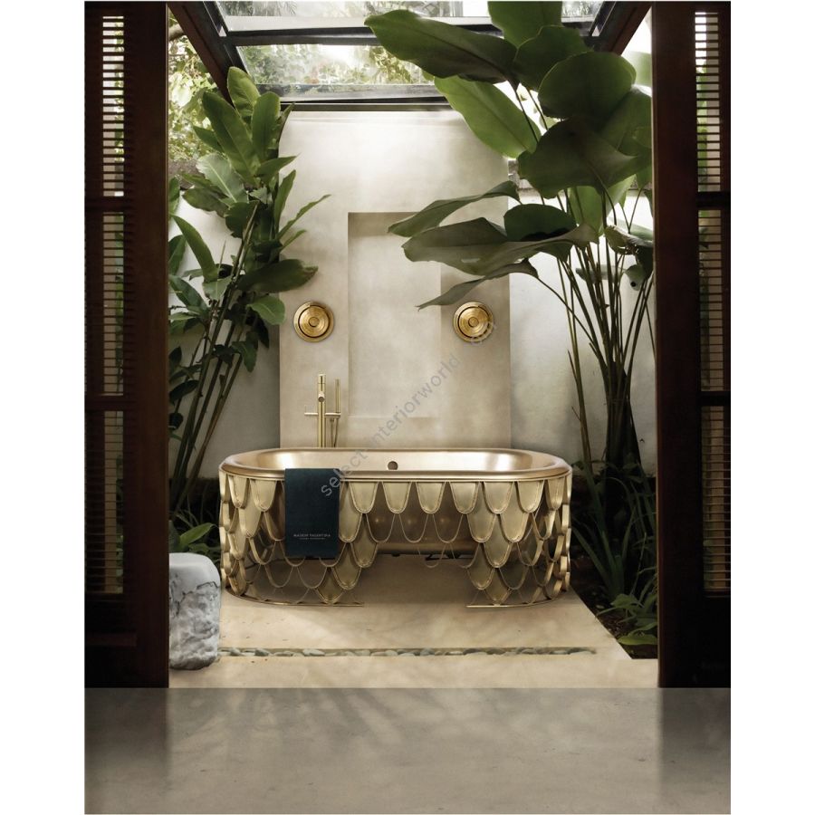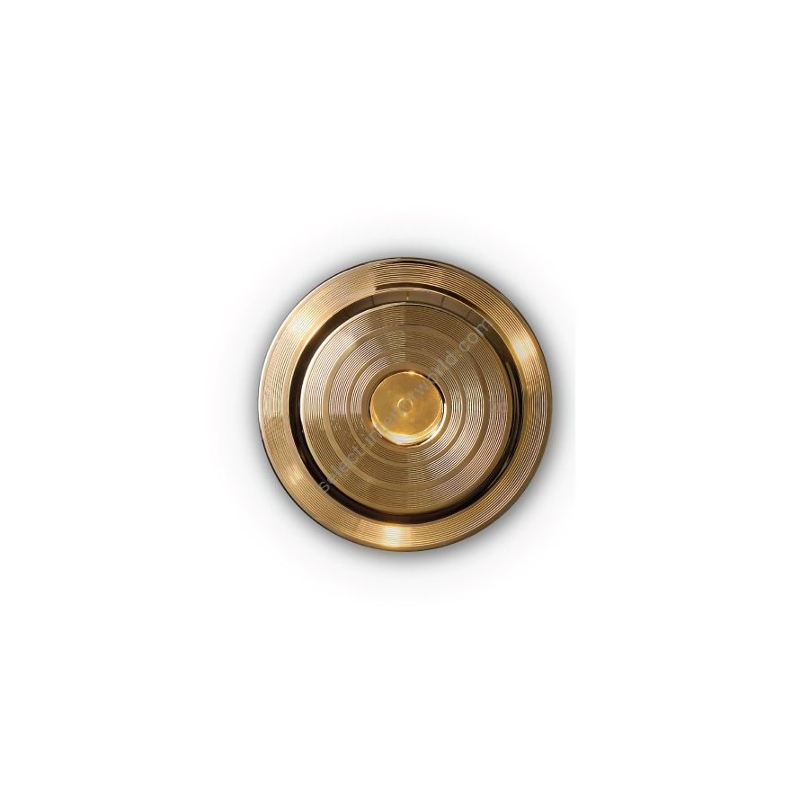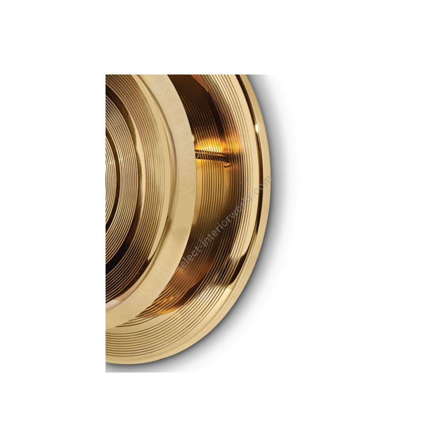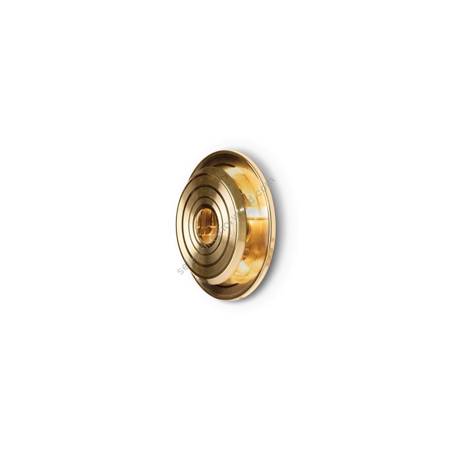 Hendrix wall sconce has a round shape that was inspired by a golden vinyl player. Ideal for every single mid-century modern interior, this wall light fixture will bring a smooth lighting effect to your room. 100% handmade in brass, Hendrix showcases a high quality craftsmanship. With a gold plated finish, this wall light has an avant-garde design perfect for modern and contemporary environments. These three symmetric light sources cast a perfect caustic phenomena reflected that gives life to any living room decor, restaurant and bar.