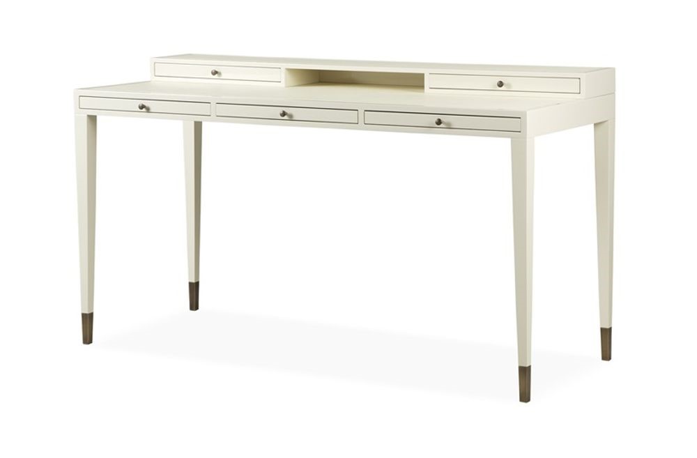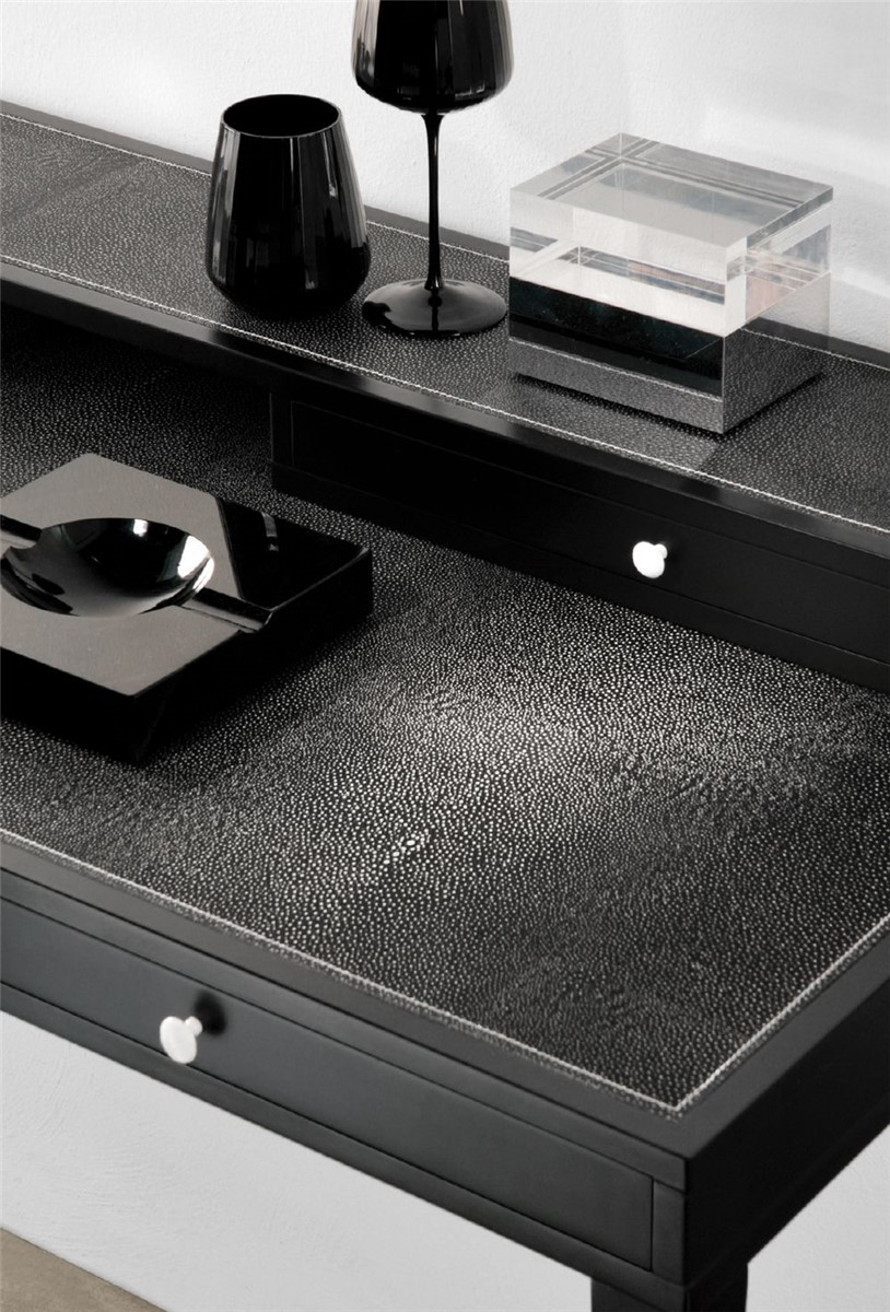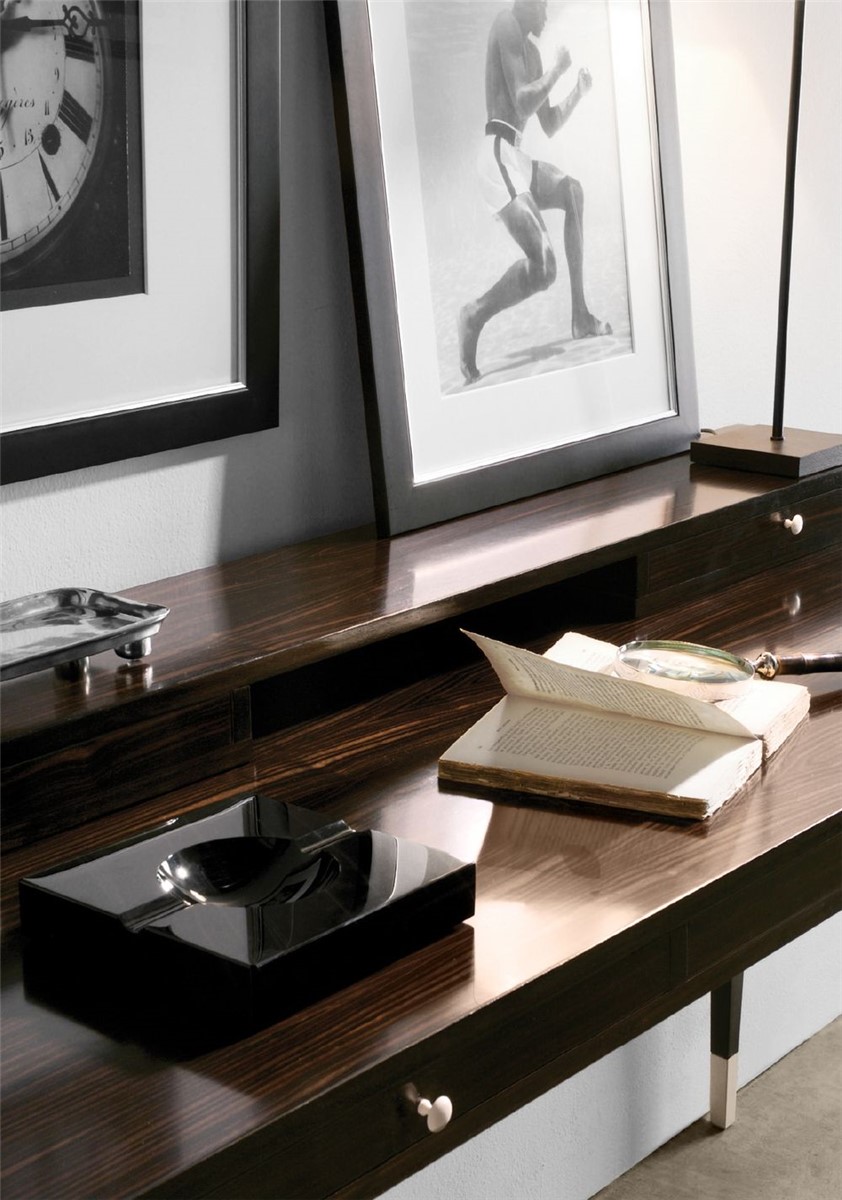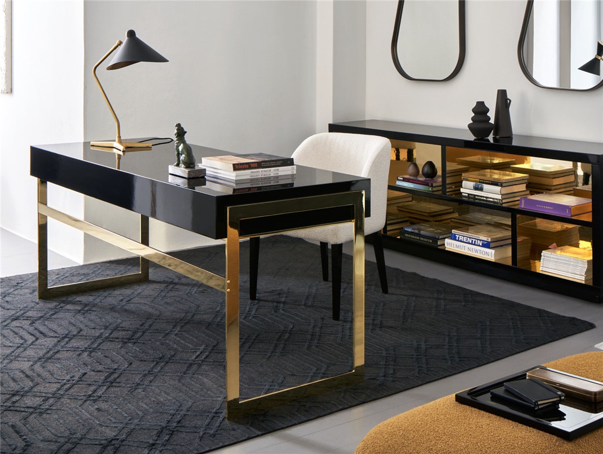 Victoria is a chic “bureau de dame” ideal for sleeping areas and studios. The Victoria and Victor desks share the same refined design and the same inspiration from the 40s. The desk presents five drawers that can be opened through gracious handles which match with the tips of the legs.