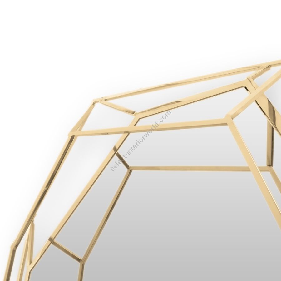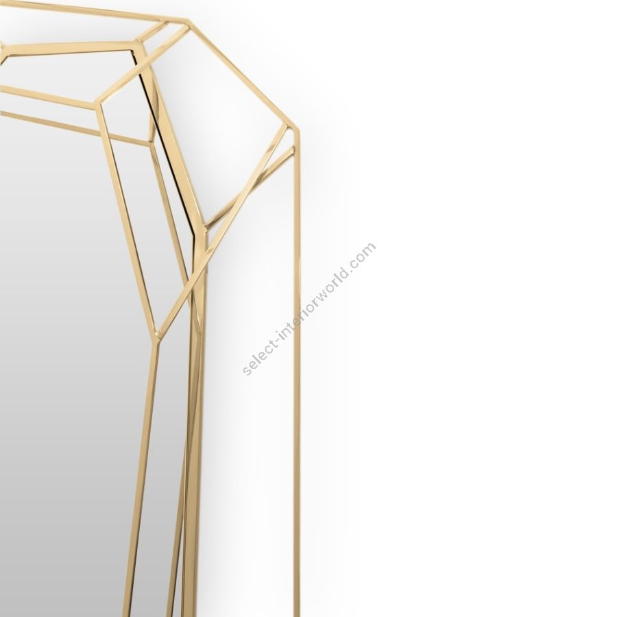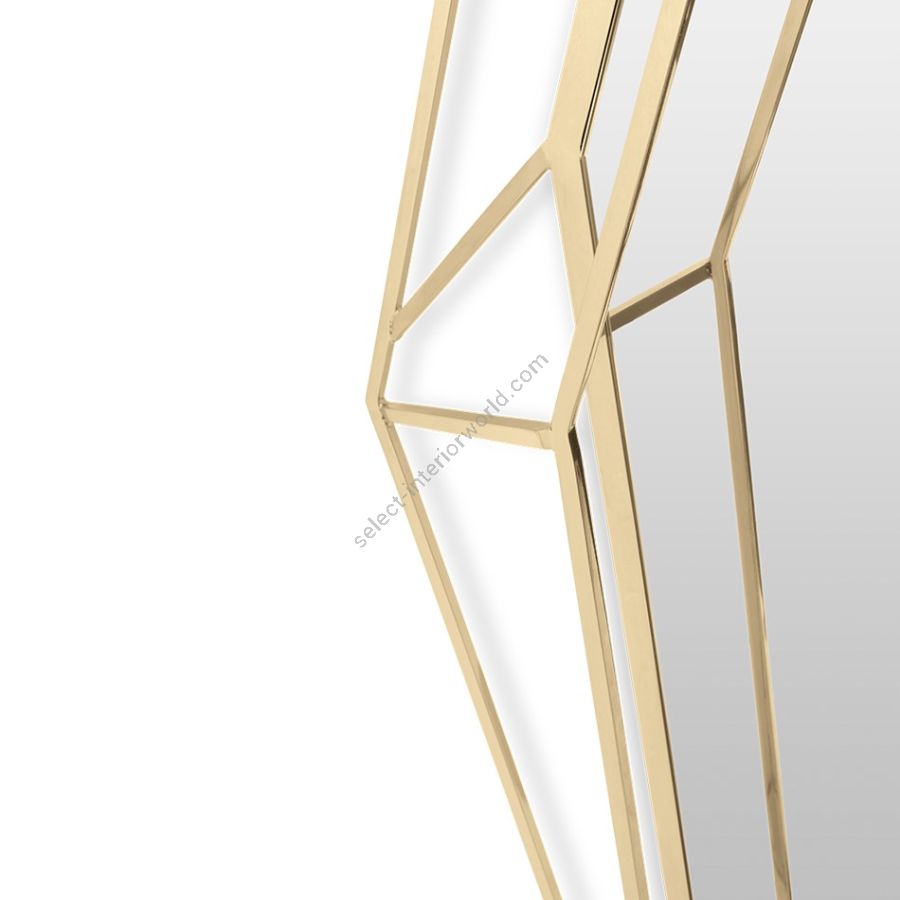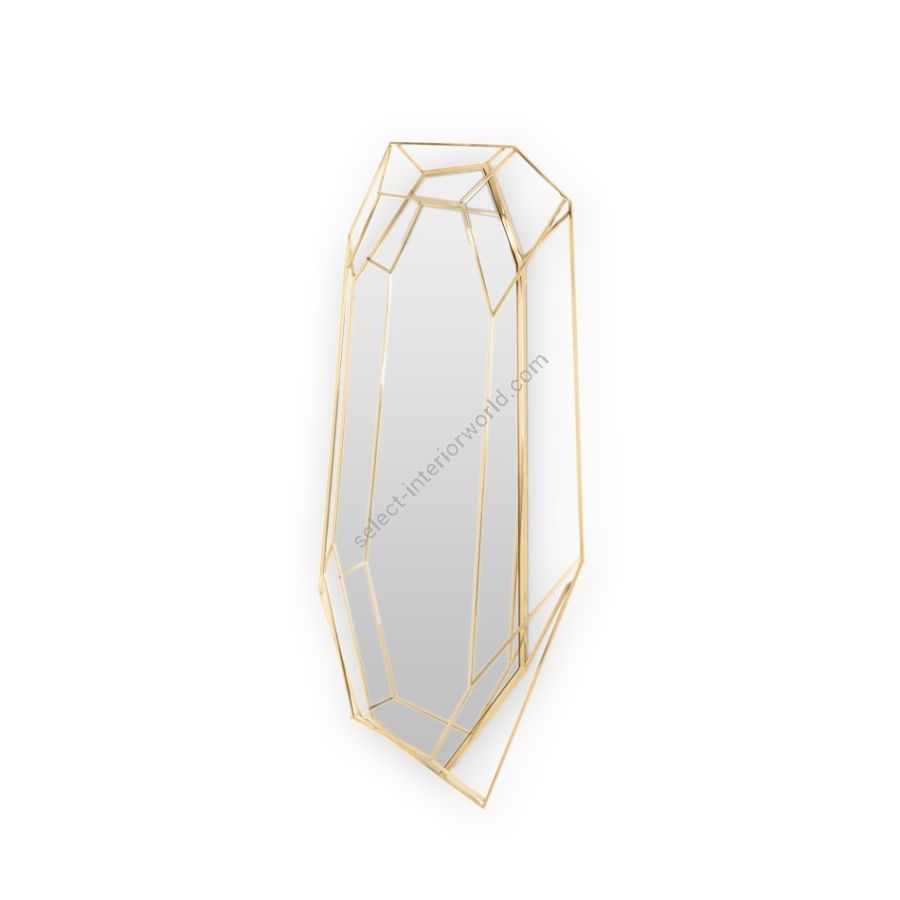 A full-length version of the diamond-shaped mirror. Crafted in a polished brass structure it produces a tall sleek design, merging geometry and design in the same object. This amazing piece will add a luxurious and rich element to any interior.
