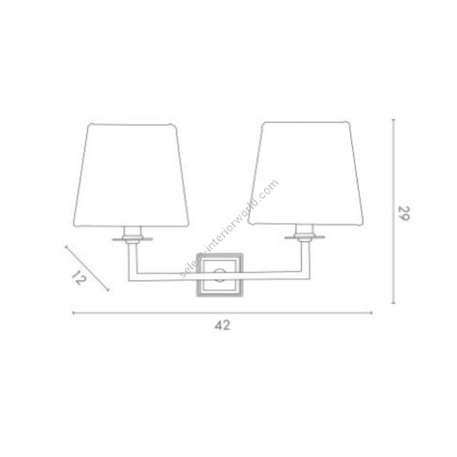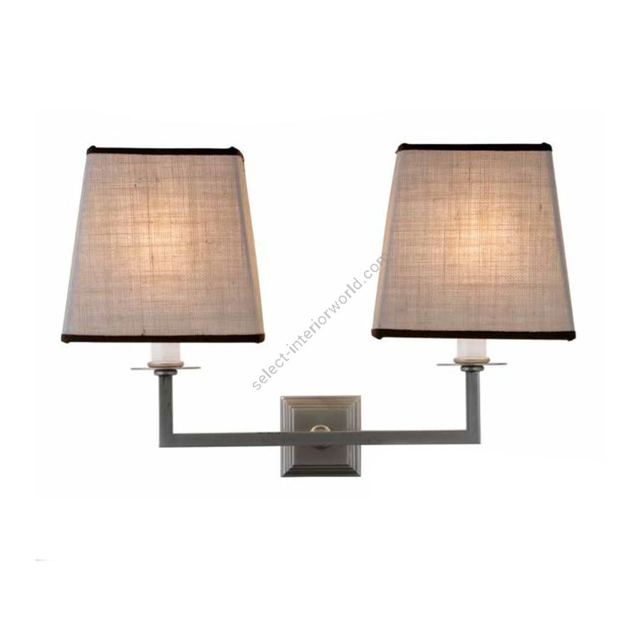 Lamp for wall installation mounting bracket for fixing at wall. Structure in brass with double fabric lampshades.